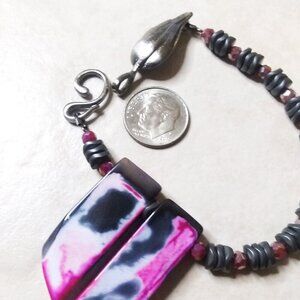 Asymmetrical One-of-a-kind Bracelet with 2 distinct black, gray & pink Agate Bar focal beads - flip the bracelet around for a more color intense experience!