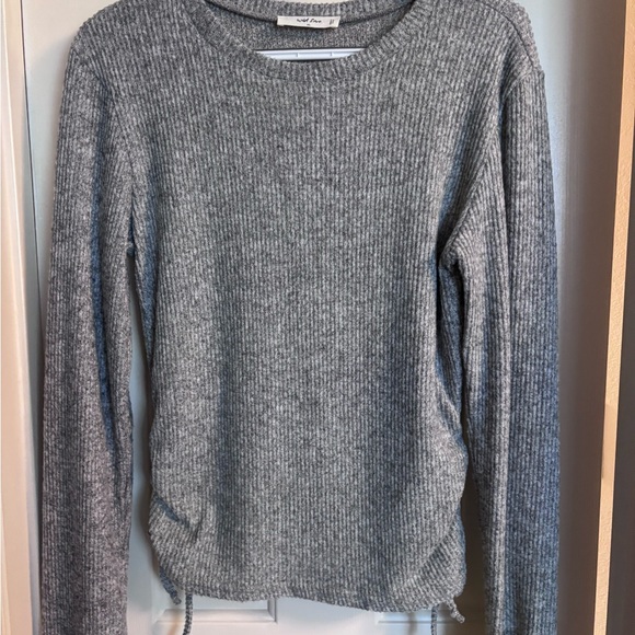 Gray sweater with ruching on the sides. smoke, and animal free home.