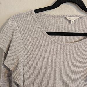 Gray Ruffle Sleeve Ribbed Top