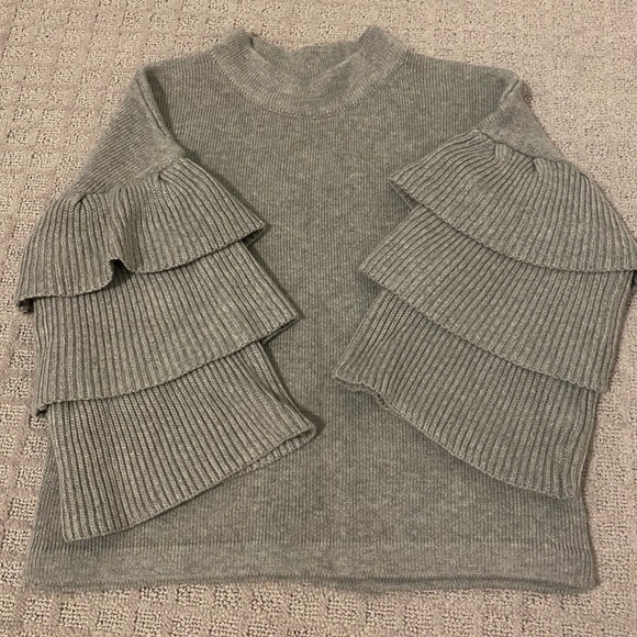 Gray Ruffle Sleeve Sweater