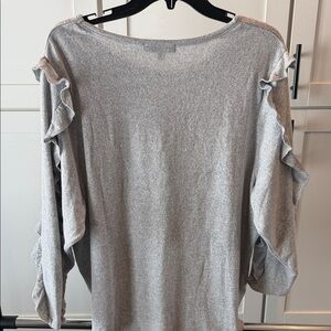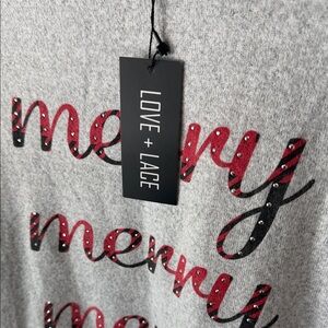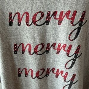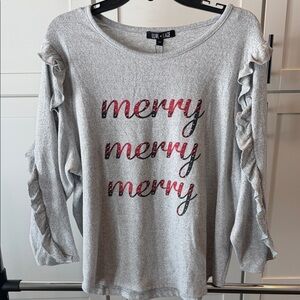Embrace comfort and style with the gray sweatshirt, featuring charming ruffle sleeves and a festive 'merry' print. Ideal for casual wear.
