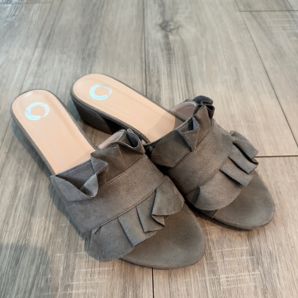 Gray Ruffle Slide Sandals