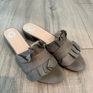 Journee collection gray sandals with an approx. 1" block heel Bottoms are a little worn but insides are like new Size 10