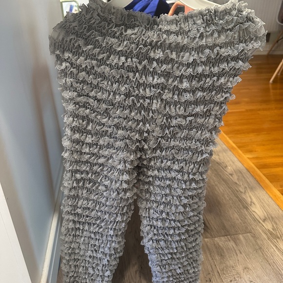 Stylish and comfortable gray stretchy ruffled leggings. Perfect for any occasion.