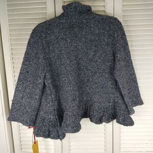 Stylish gray ruffled cardigan. Perfect for layering.