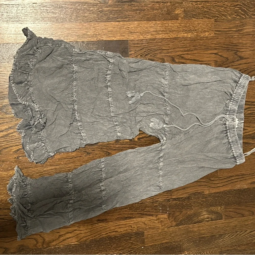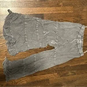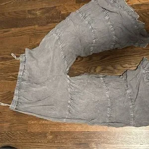 Stylish gray pants with ruffled details. Perfect for casual wear.