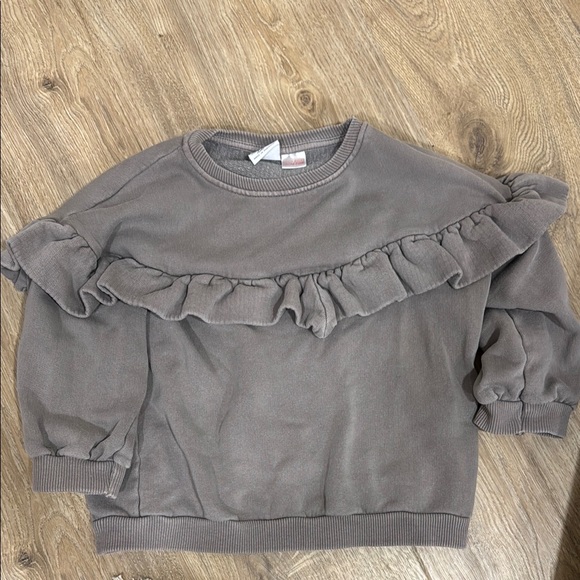 Stylish gray sweatshirt with ruffle details. Perfect for casual wear.