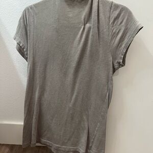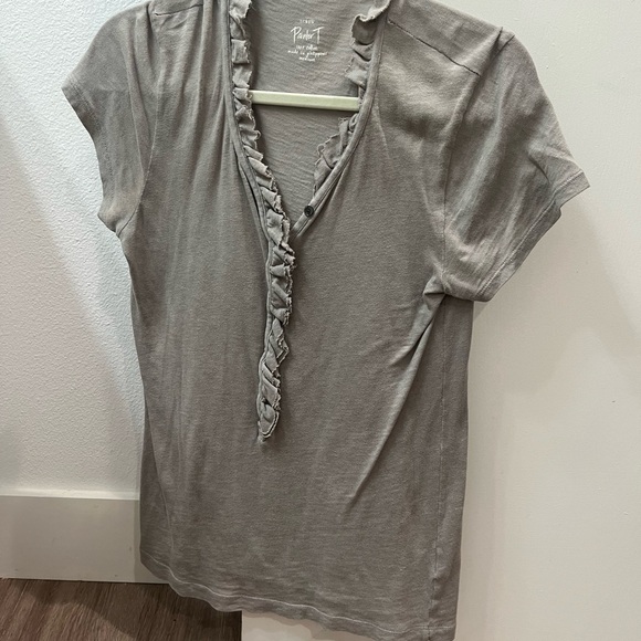 Gray ruffled tshirt. Slight discoloration shown, but hardly noticeable.
