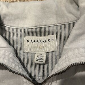 Stylish gray jacket with elegant ruffle detailing. Perfect for adding a touch of sophistication to any outfit.