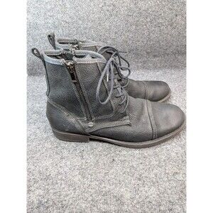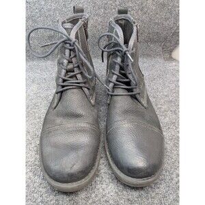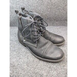 Gray Saks Fifth Avenue Men's Black Leather Double Zip/Lace Up Boots Size 11