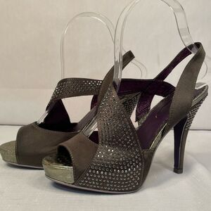 Gray Sandals 4.5” Heels with Rhinestone Detailing size 36.5 NWOT