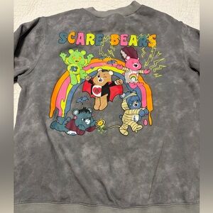 Cozy gray sweatshirt featuring colorful Scare Bears graphic. Great condition junior small