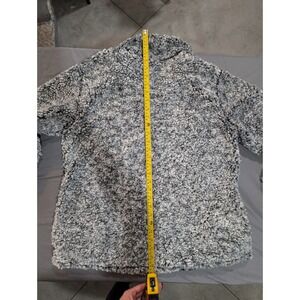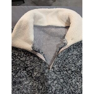 Keywords: sherpa pullover, fleece jacket, gray sweater, cozy sweater, winter sweater, warm jacket, fleece pullover, women's pullover, casual sweater, long sleeve, fuzzy sweater, soft sweater, gray fleece