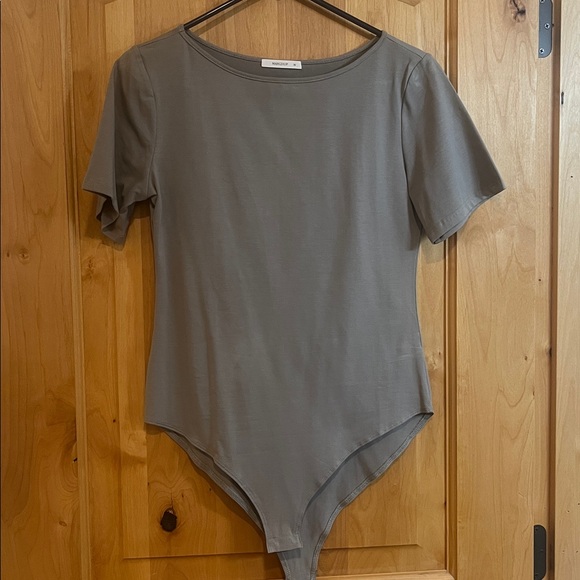 Stylish gray short sleeve bodysuit. Perfect for layering or wearing alone. Brand new without tags. Never worn