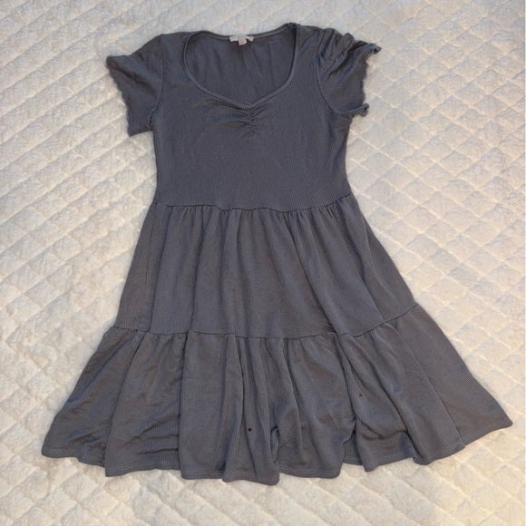 Gray Short Sleeve Ruffle Dress
