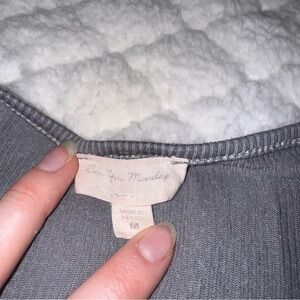 See You Monday grey babydoll dress with ruffle sleeves, has some small stains in the front