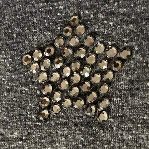 Selling this gray short sleeve T shirt with Swarovski crystals star - Size M/L. 100% cotton. No tags. Please note: you should hand wash to ensure crystals don't come off. I had to glue one crystal back on this shirt and got a tiny bit of glue on the right sleeve. You can't see it, but if you feel for it, it feels a bit stiff. (Picture of sleeve above.) Measurements below.