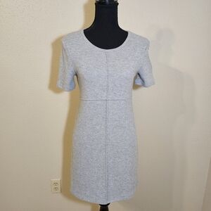 Elegant gray dress with short sleeves, perfect for any occasion. Comfortable and stylish, this dress is a must-have in your wardrobe. soft, comfy, sweater dress