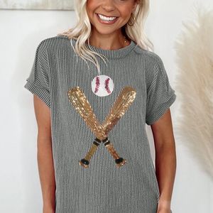 Stylish gray short sleeve tee perfect for casual outings. Features a unique baseball and bat design. Comfortable and trendy for everyday wear.