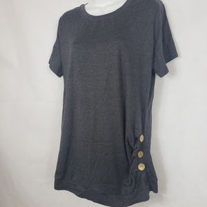 Gray Short-Sleeve Crew Neck Side Button T-Shirt lg