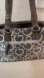 This elegant shoulder bag features a sophisticated gray color with a signature Guess monogram pattern. Its structured design and silver-toned hardware add a touch of luxury, making it a versatile accessory for any occasion.