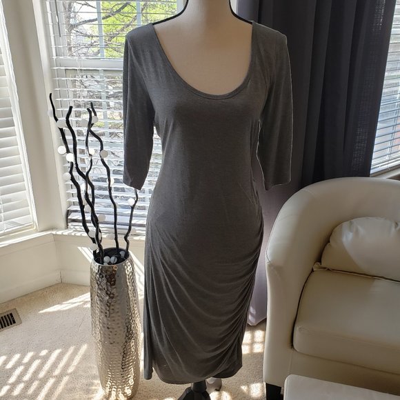 • NWT • Side ruching from hip down of the left side • Scoop neck • 3 1/4 sleeves • 100% Rayon
