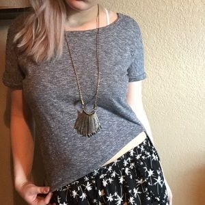 Has little slits in the side, shows a cute tummy! Size Small, very comfy! All my clothes are very well taken care of and from a NON-SMOKING home. 🙉💁🏼
