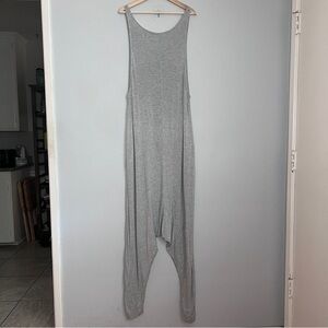 Unbranded grey cotton blend drop crotch romper jumpsuit with pockets and tapered ankle legs. Stretchy and soft. No tags, but measures to be a medium to large.