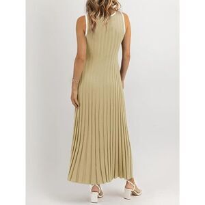 Feature: Sleeveless tank dress, ribbed knit, crewneck maxi dress, button hollow out, a line flared, flowy swing, contrast colors, slim fit, elegant and fashion, casual and formal