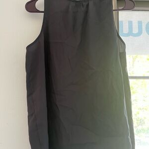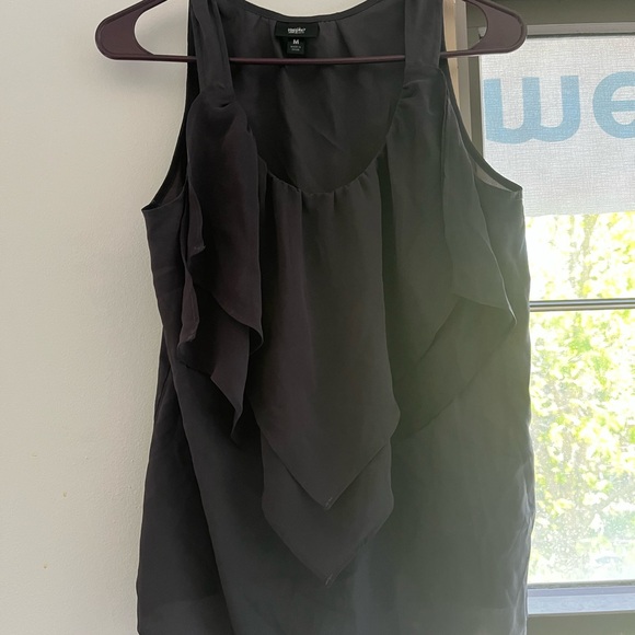 Chic black sleeveless top with ruffle details. Perfect for any occasion.
