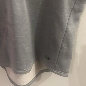 Stylish gray sleeveless top with a zip-up front by Under Armour..Perfect for gym or any athletic activities..size medium in excellent condition.. armpit to armpit 20”