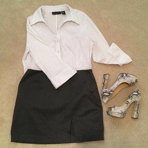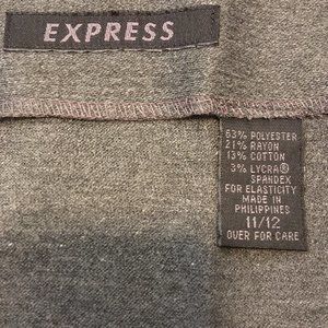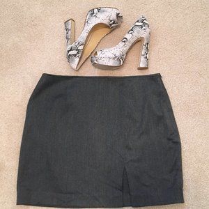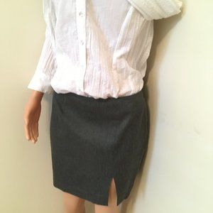 Lightweight gray skirt has the look of wool. Hidden zipper on side. Fabric blend is 63% polyester, 21% rayon, 13% cotton, 3% lycra spandex for elasticity. New without tags. Never worn. Size 11/12.