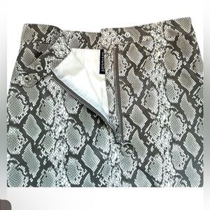 Elevate your style with this chic gray snake print mini skirt. Perfect for any occasion, this skirt adds a trendy touch to your wardrobe.