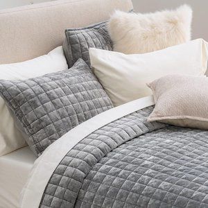 Gray Soft Quilted Squares Velvet Grey Bedding Set King Size Bed Quilt and Shams