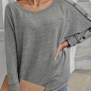 Gray Solid Color Button Decor Dolman Sleeve Top