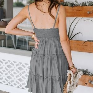 Brand New Gray Spaghetti Straps Ruched Ruffled Mini Dress 100% Polyester