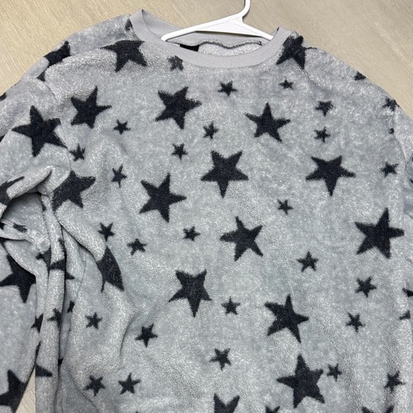 Cozy gray sweater with black star pattern. Perfect for casual wear.