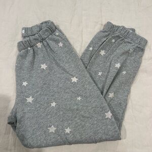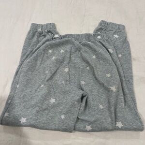 Cozy gray pajama pants with white star pattern. Elastic waistband for comfort.