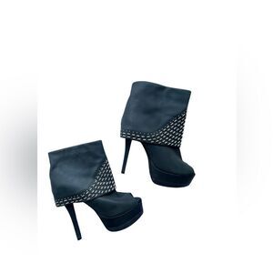 Steve Madden open toes Women's Studded Ankle Booties high block heel studded accents zip closure excellent condition Size 8.5