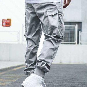Gray Street Style Men's Cargo Pants w/Letter Graphic Flap Pockets