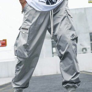 Gray Street Style Men's Cargo Pants w/Letter Graphic Flap Pockets