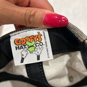 Stylish gray striped cap featuring a Mickey Mouse patch. Perfect for casual wear. Adjustable