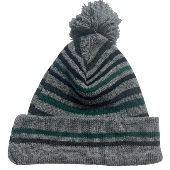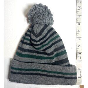 Gray Striped Knit Pom-Pom Beanie Hat 18p