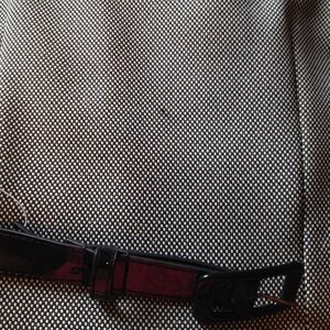 Professional dress perfect for work. The top folds over making it very stylish. This is an awesome find - great quality and super cute! Has a patent belt attached. Very small snag on front of dress near upper stomach area- bought like this. Reflected in price. NWT!