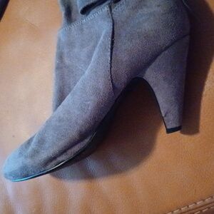 Stylish gray suede over the knee boots with a sleek design. Perfect for any occasion.
