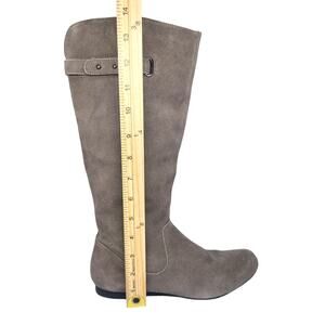 Gray Suede Riding Boots Womens 6 Knee High Low Heel Leather Zipper Side