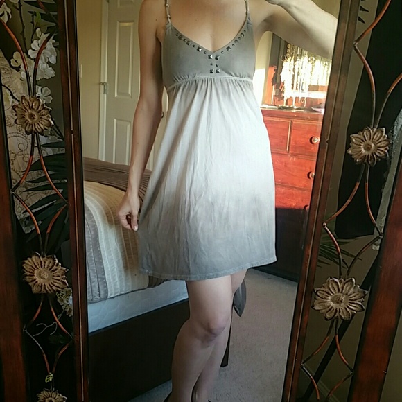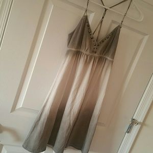 Cotton dress. Form-fitting around bust, loose everywhere else. Tie back.