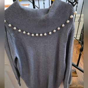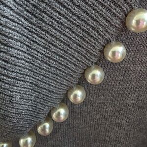 Elegant gray sweater featuring stylish pearl accents. Perfect for adding a touch of sophistication to your wardrobe.