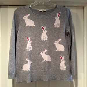 Cozy gray sweater featuring a charming rabbit design. Perfect for adding a playful touch to your wardrobe.