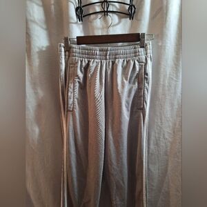 Comfortable gray sweatpants has a blue spot inside of pants size small side to side measurements is 13" rise is 12" inseam is 30.5" top of waist to bottom hem is 39" bundle more items for bigger deals Bin-128